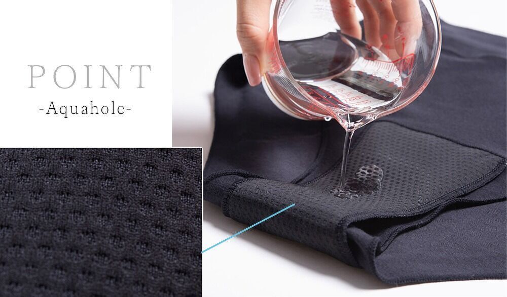 吸水面の肌面には、細かな凹凸のある吸水速乾繊維(アクアホール®)を採用しました。